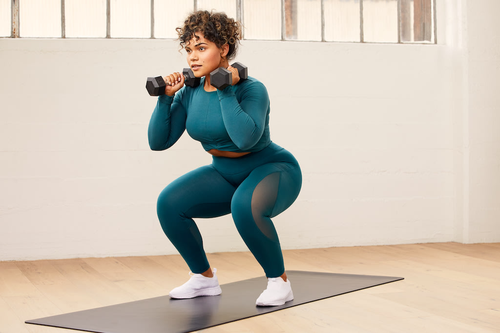This full-body workout comes from Week 1 of the program and has three phases. You’ll need a pair of dumbbells for this workout — if you don’t have weights, you can substitute for safe household objects of similar weight, or you can omit them from the workout.